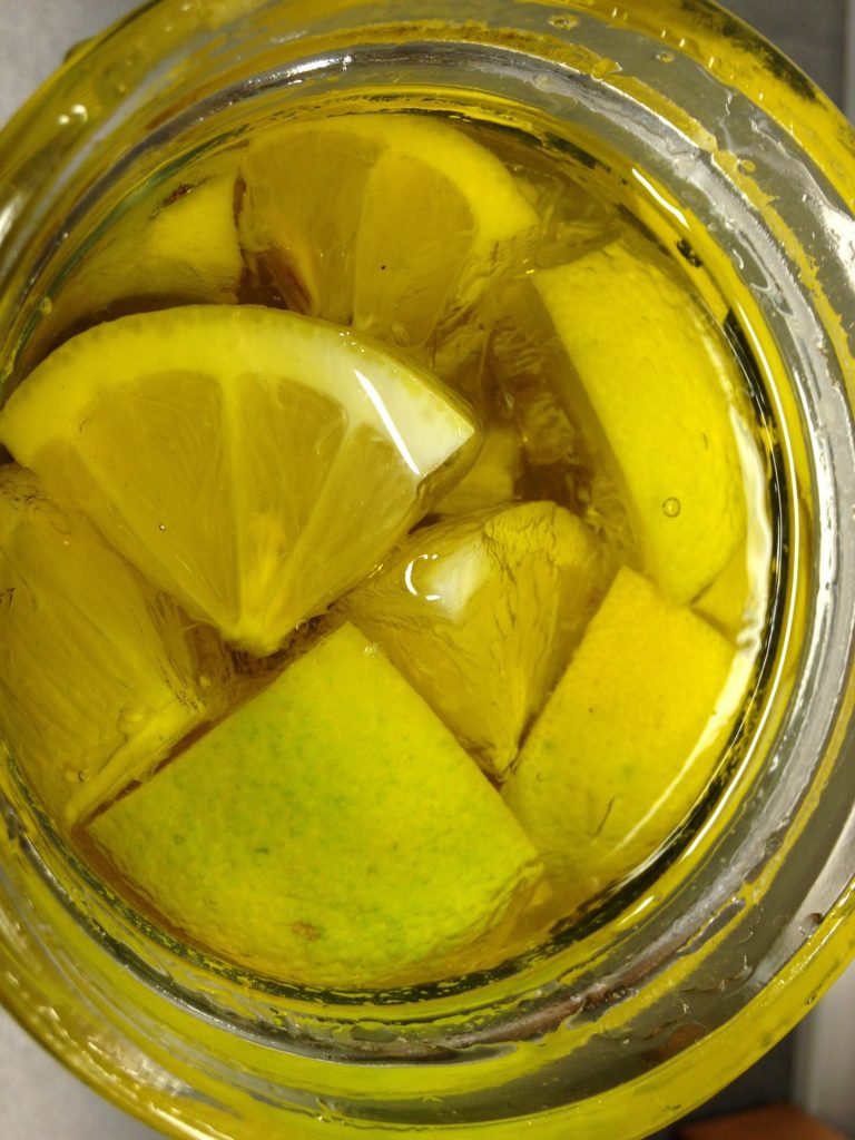 Die Zitronen müssen vollständig mit Flüssigkeit bedeckt sein und 5-7 Tage ziehen, wobei das Glas immer wieder durchgeschüttelt wird. Anschließend das Olivenöl dazugeben und für das beste Aroma nochmal 4-6 Wochen an eine dunklen und kühlen Ort ziehen lassen. Achte immer darauf, dass die Zitronen komplett von Flüssigkeit bedeckt sind, sonst können sie schimmeln.