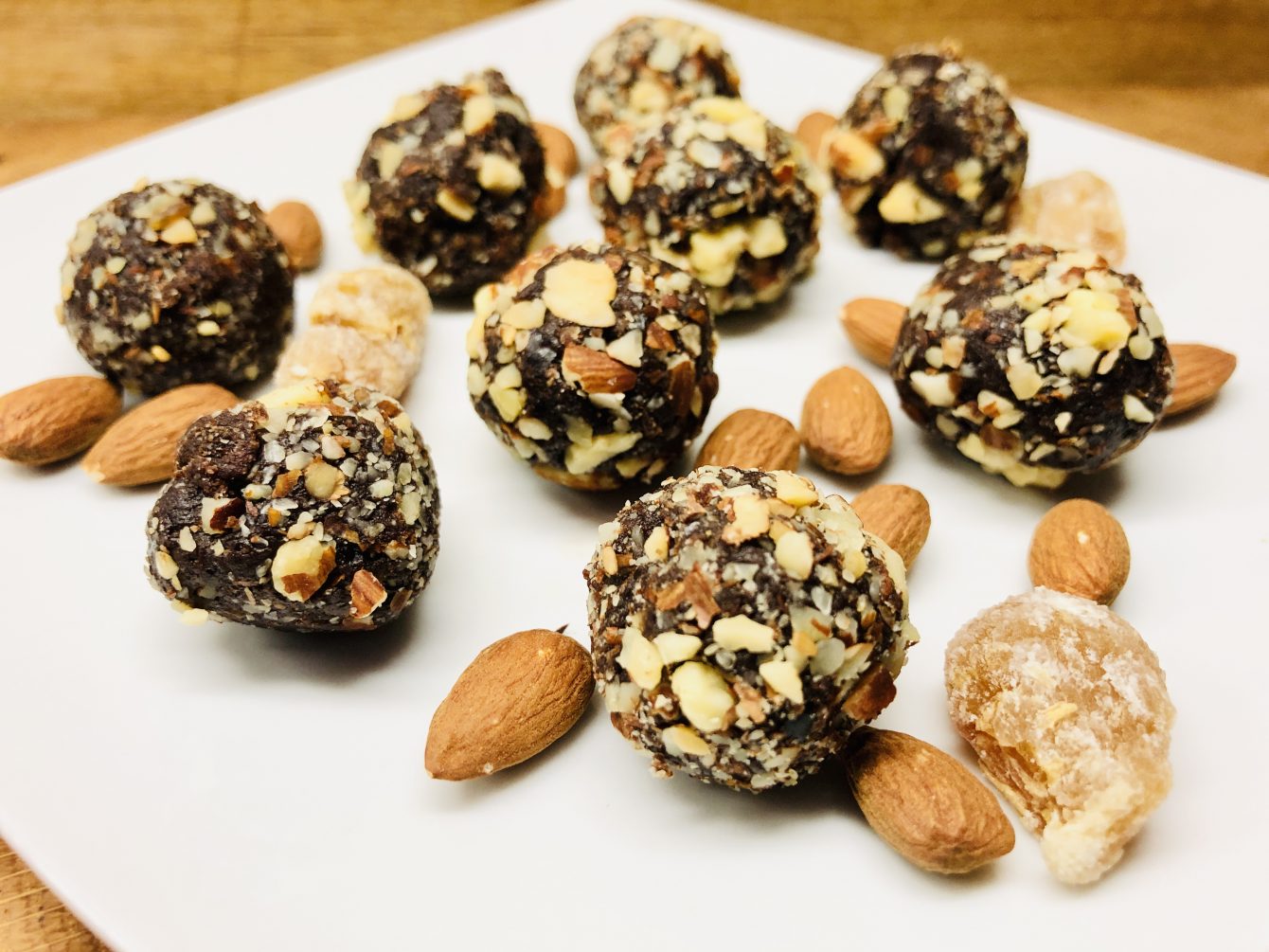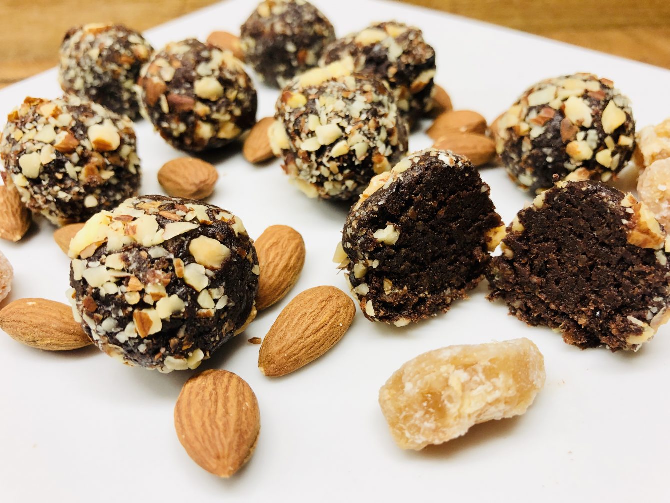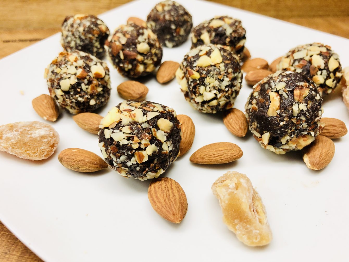 Das Rezept für die Ingwer Schoko-Fudge Energiebällchen mit Mandeln