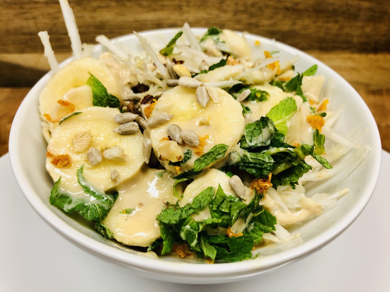 Dieser Sellerie Bananen Salat mit Mandeln ist mal eine gute Alternative zum klassischen Waldorf-Salats. Er ist fruchtig, sättigend und sehr lecker!
