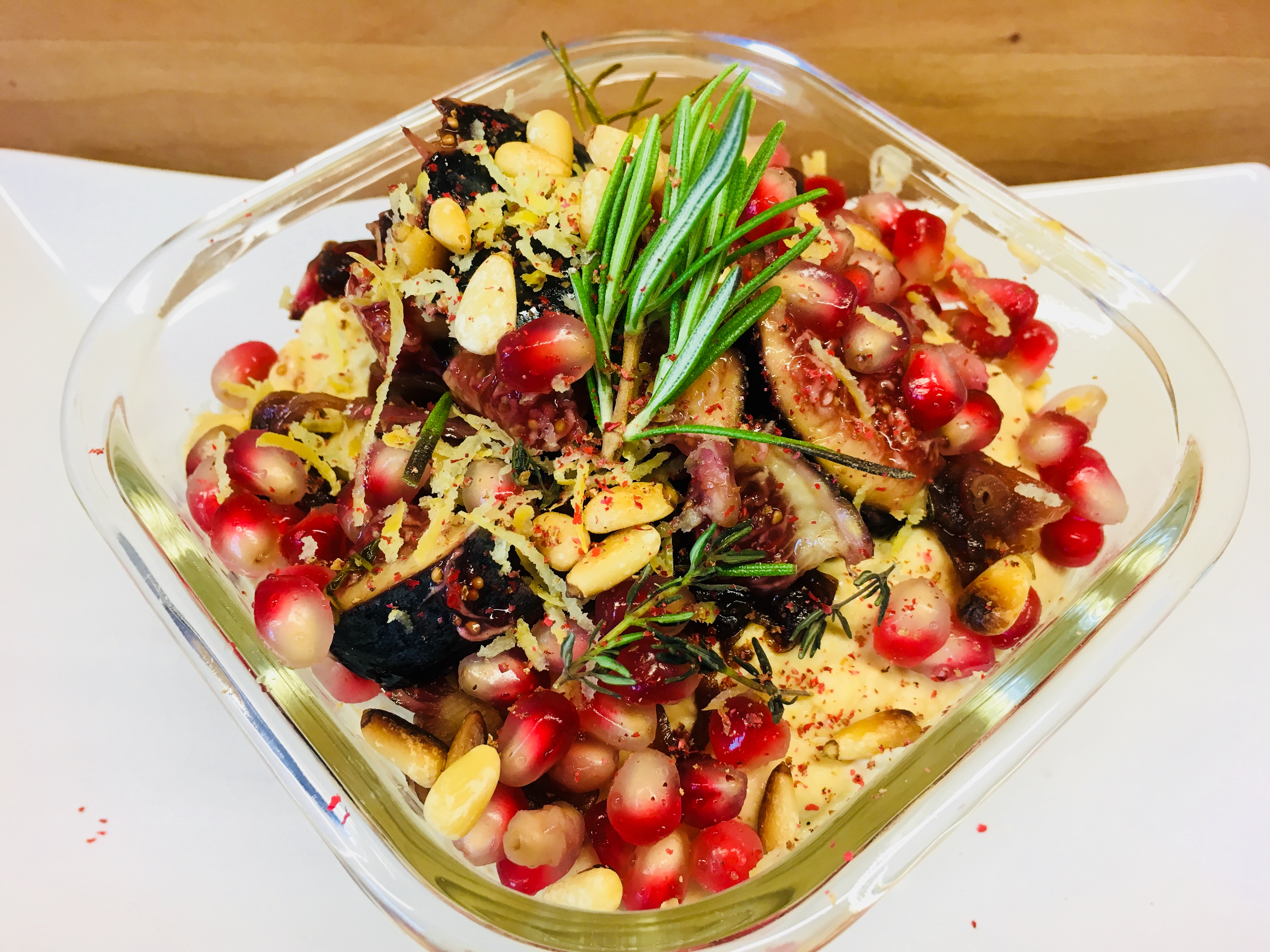[…] Spiced Hummus mit Feigen, roten Balsamico Zwiebeln, Granatapfelkernenund roten Pfefferbeeren […]