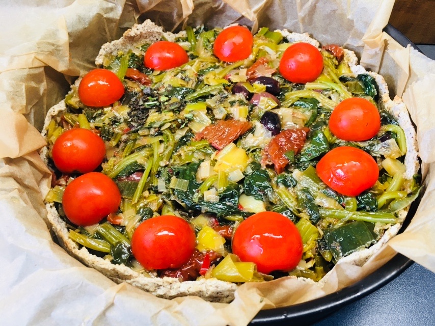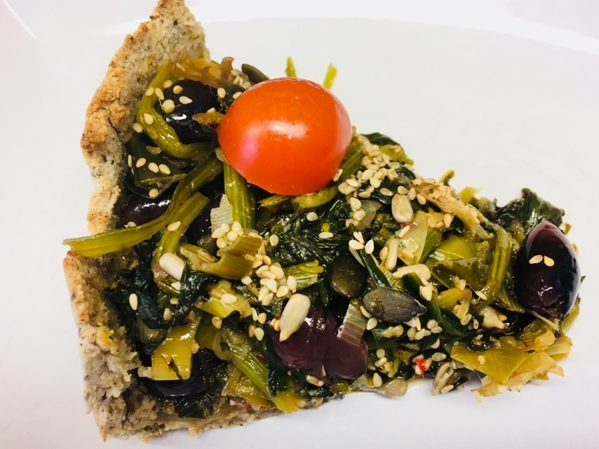 Spinat Tarte mit Oliven und getrockneten Tomaten