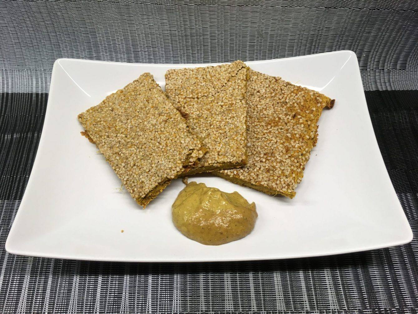 Die Idee zu diesem Rezept stammt von Green Mindmap Rohkostbrot. Ich habe das Rezept aber etwas verändert und ergänzt, vor allem mit ganz vielen Gewürzen.