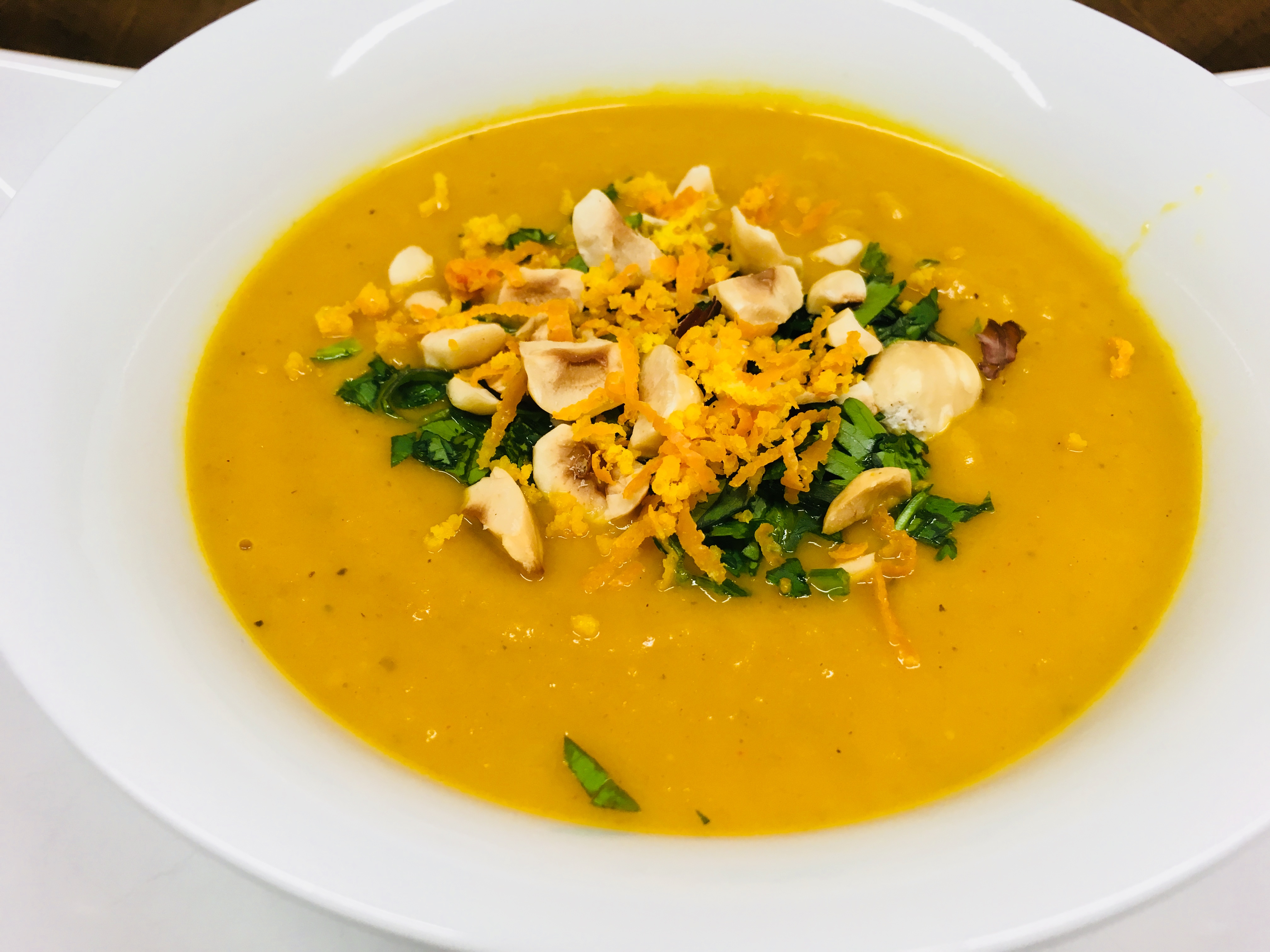 Süßkartoffel Pastinaken Suppe mit weißen Bohnen und Kokosmilch