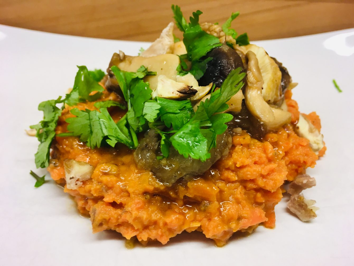 Das Rezept für das Süßkartoffel Püree mit Pilzen und Maronen