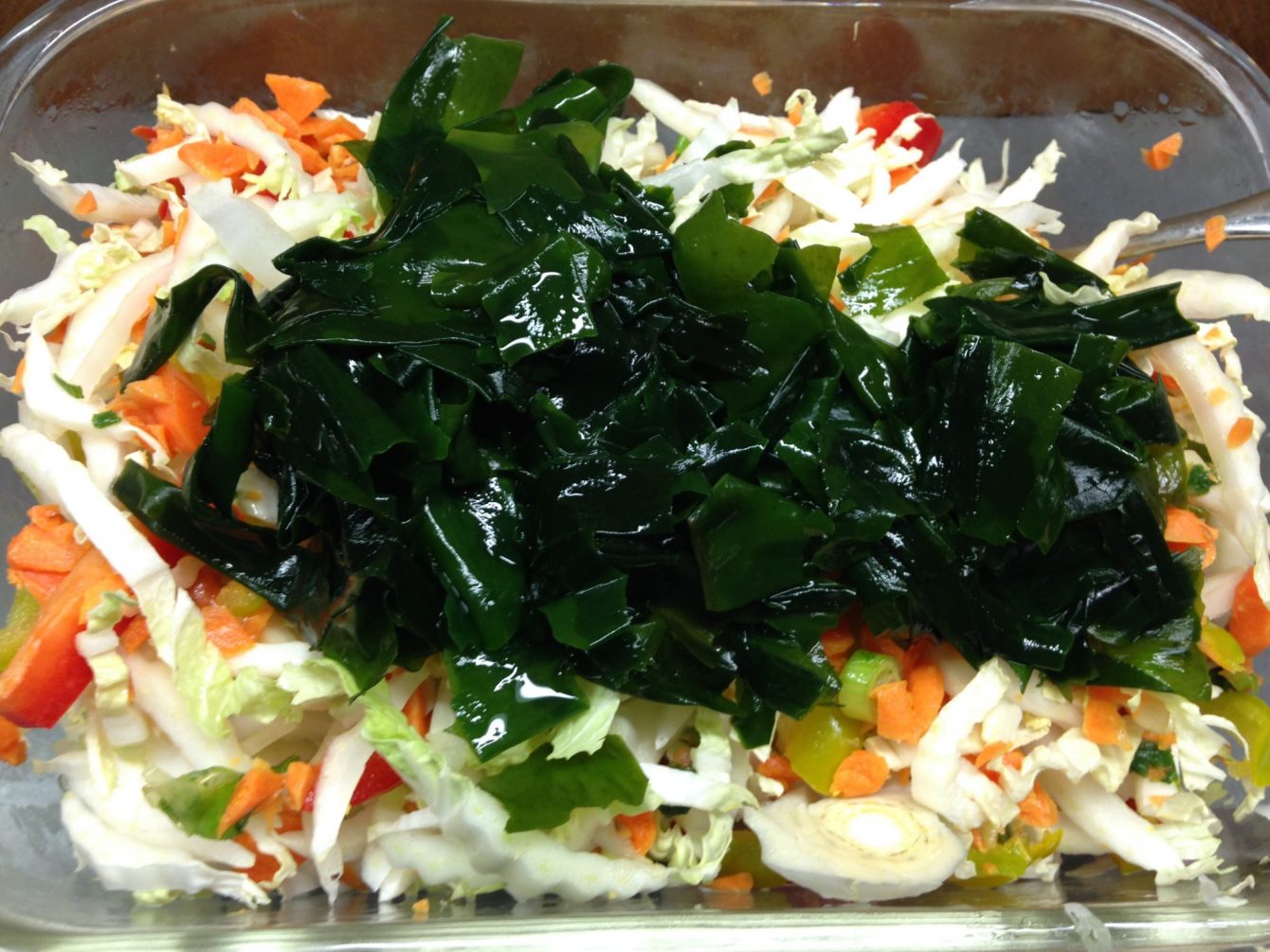 Japanischer Chinakohl Salat mit Karotten und Wakame Algen