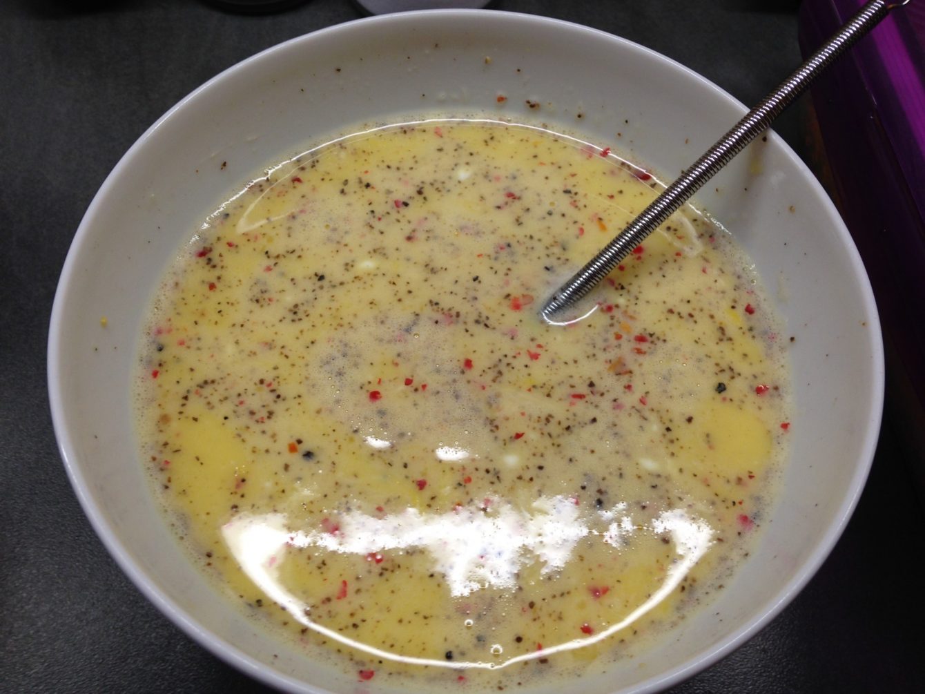 Die Rezeptidee stammt von meinem lieben Wanderfreund Peet, aufgeschnappt auf unserer gestrigen Wanderung. Ich habe das Rezept anhand der Zutaten, die ich noch im Kühlschrank hatte, etwas variiert.