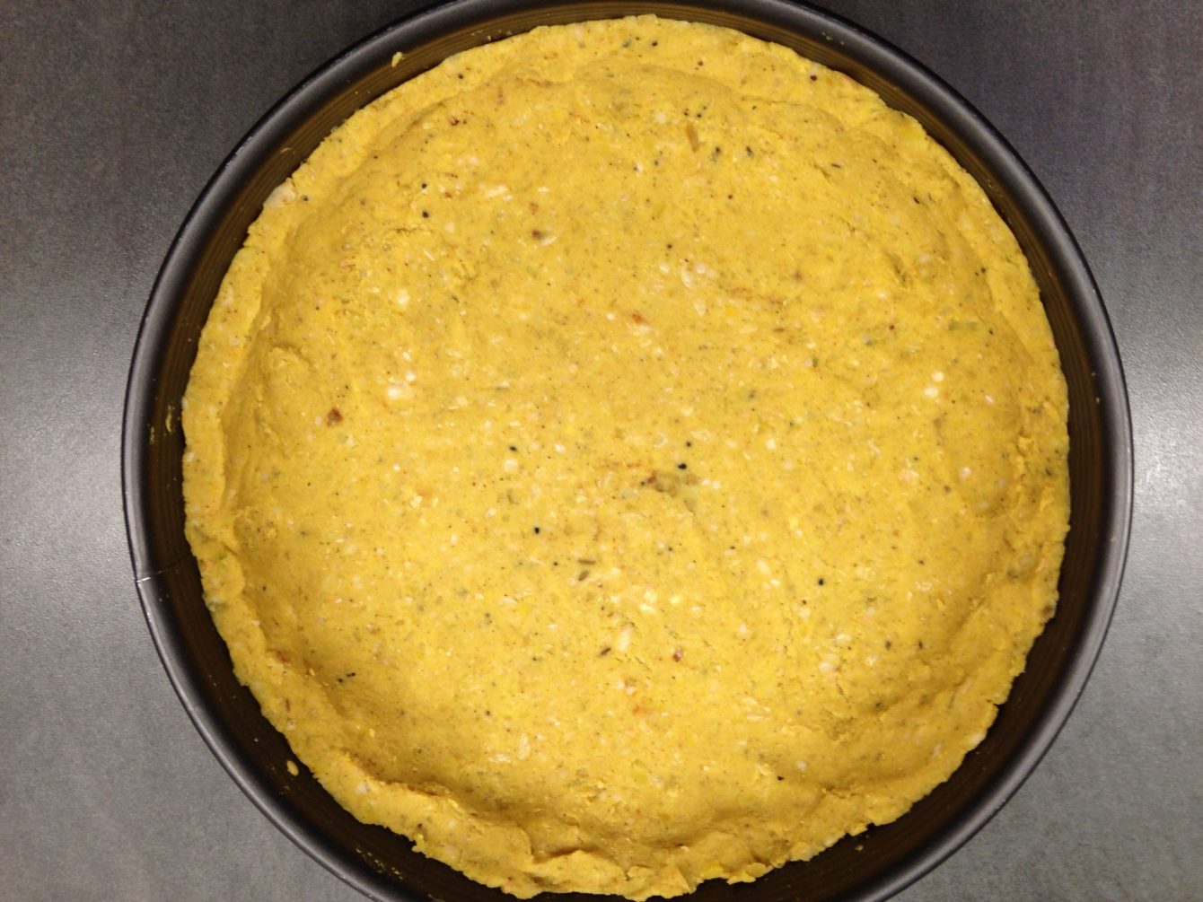 - Mit Pfeffer und Salz abschmecken und in die Kuchenform geben.