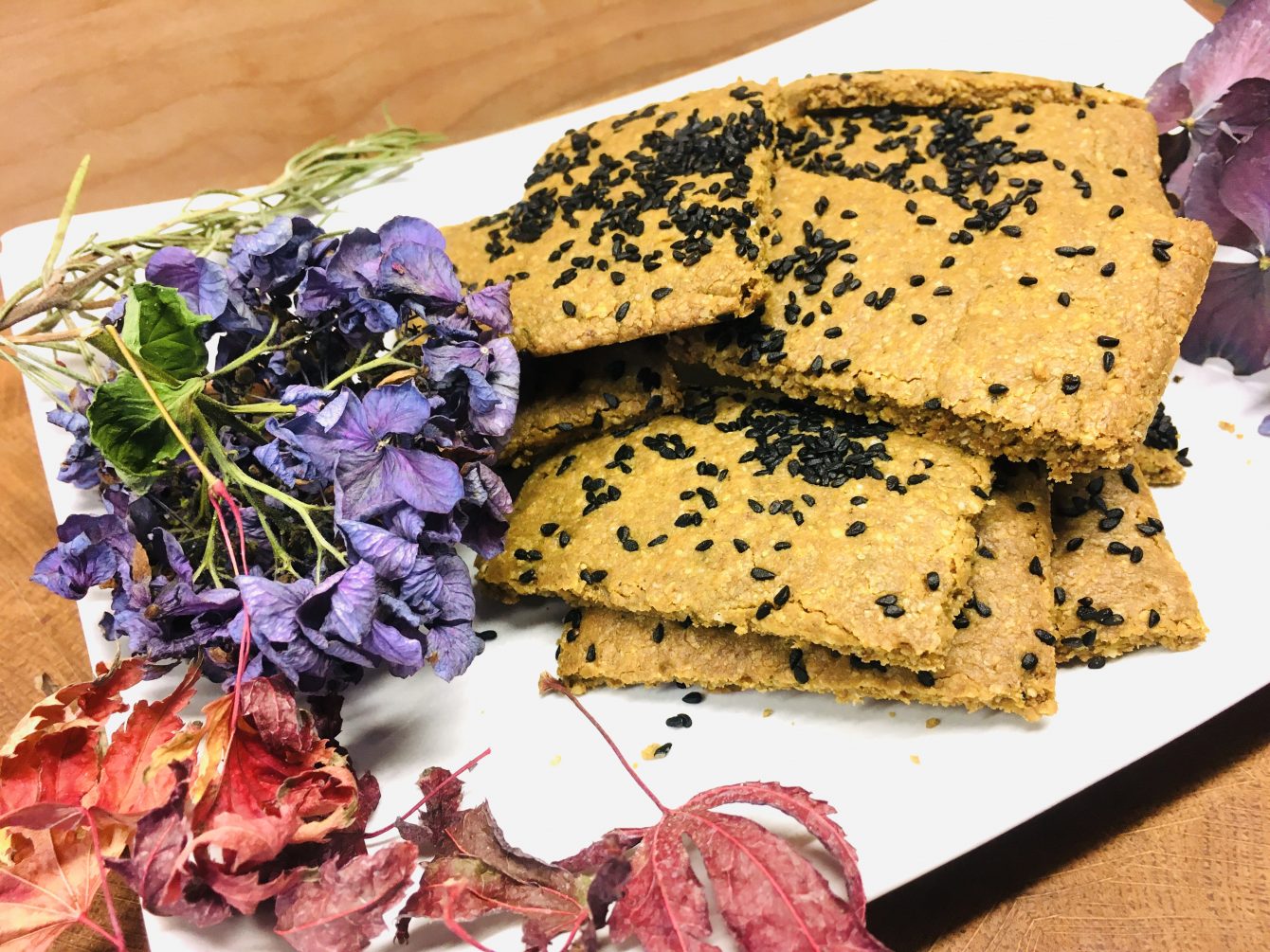 Diese herzhaft würzigen Tahini Kichererbsen Cracker werden aus Kichererbsenmehl, Sesammus und Leinsamen gebacken und sind daher vegan und glutenfrei. Toll als Snack, zu Dips oder Hummus.