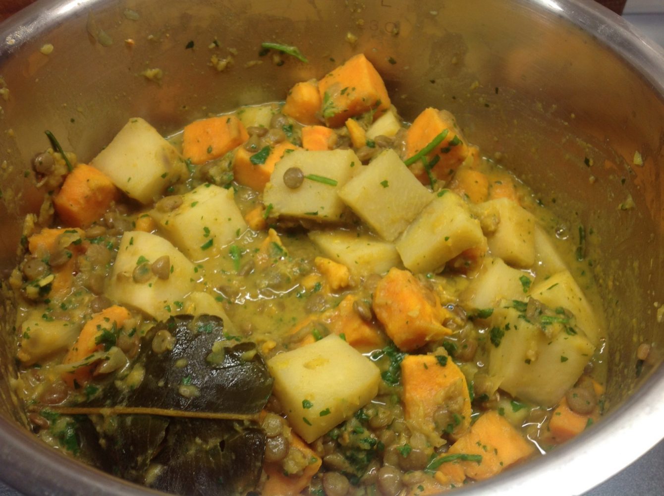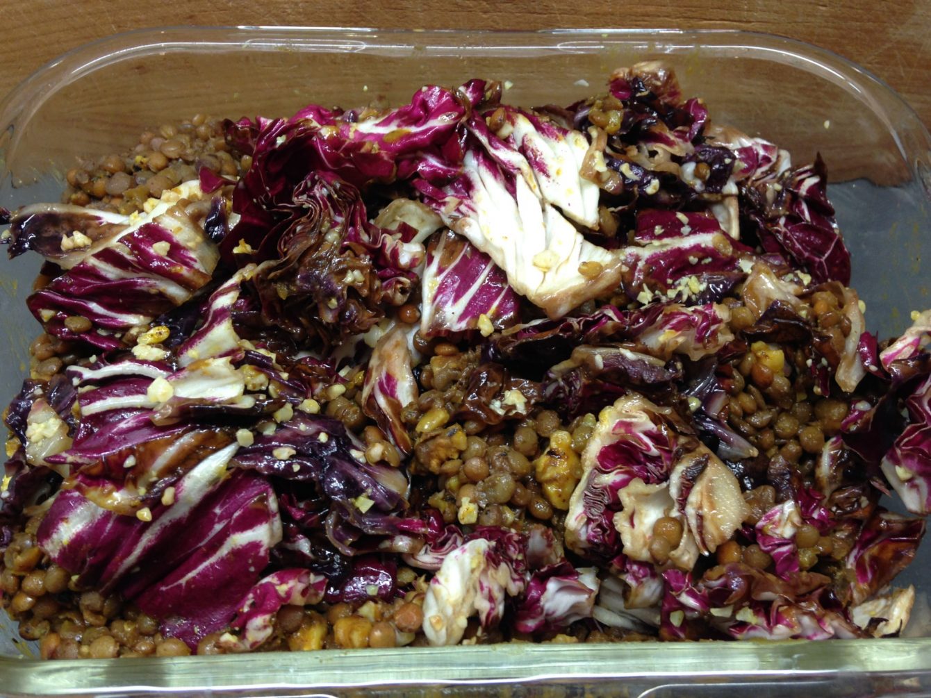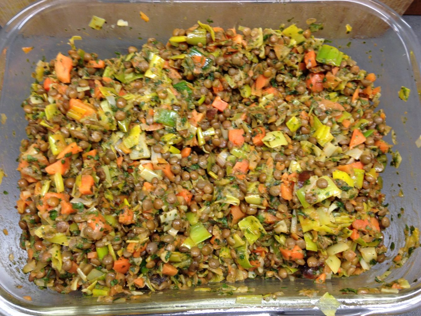 Linsensalat mit Möhren, Lauch und Datteln