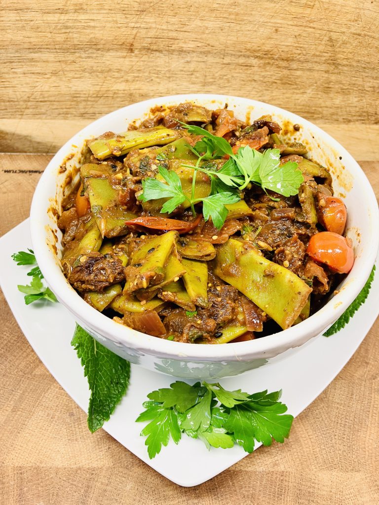 „Taze Fasulye“, wie es in der Türkei genannt wird, ist ein einfaches veganes Gemüsegericht, das als Gemüse Dip zu Pita Brot und oder auch als Beilage zu vielen Hauptgerichten passt und im gesamten Nahen Osten sehr beliebt ist. Die Kombination aus Bohnen, Tomaten, Zwiebeln und Gewürzen ergibt ein perfektes Aroma und ist ein Genuss für die Sinne.