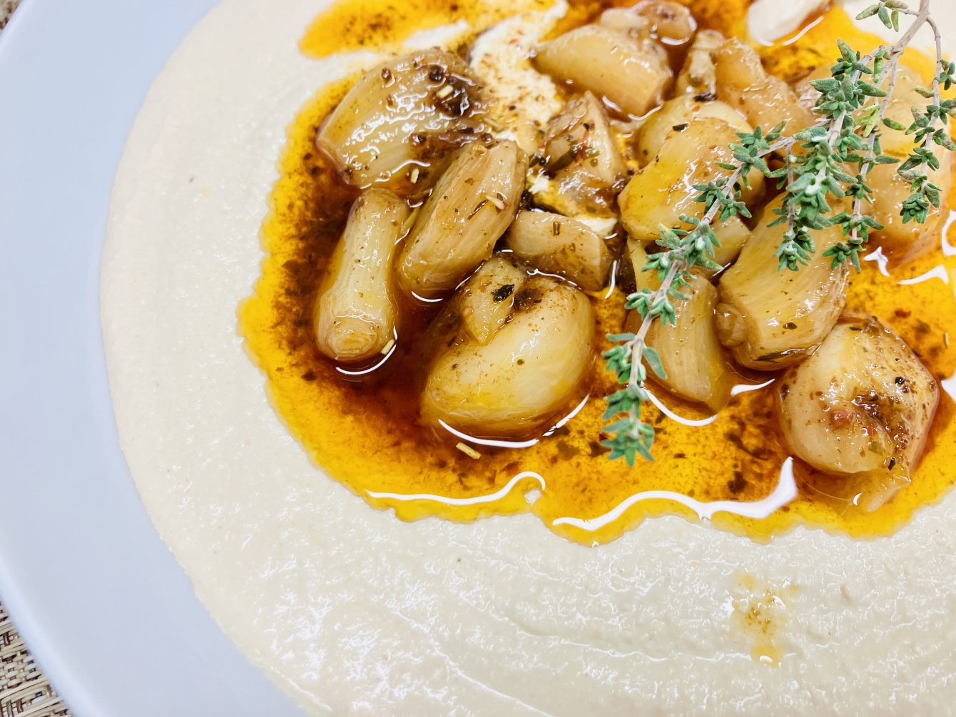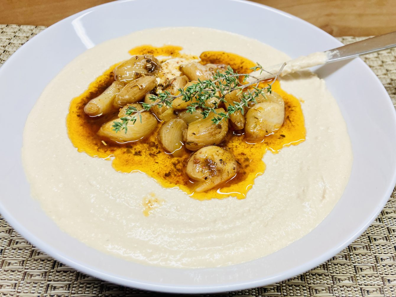 Rezept für die Tofu ricotta Creme mit confiertem Knoblauch