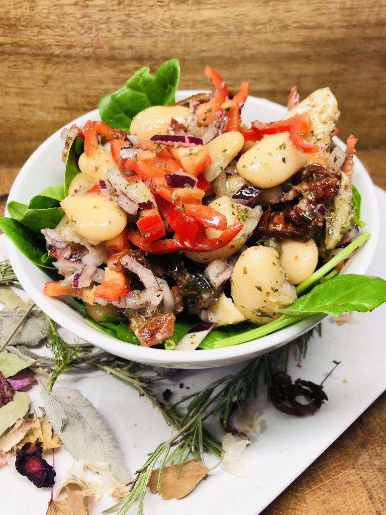 Ich liebe weiße Bohnen, egal ob als Salat, Gemüsebeilage oder Dip. Selbst Hummus habe ich schon daraus gemacht. Ich habe auch schon andere ähnlich Salate in verschiedenen Kombinationen aus der mediterranen Küche zubereitet, z.B.