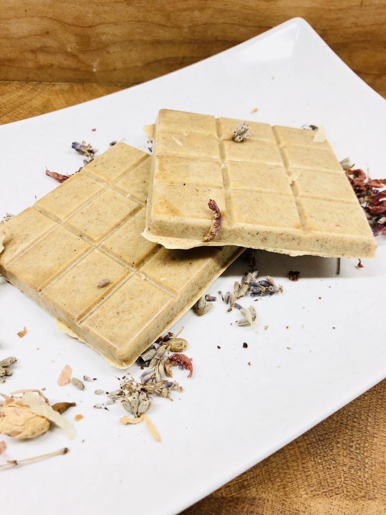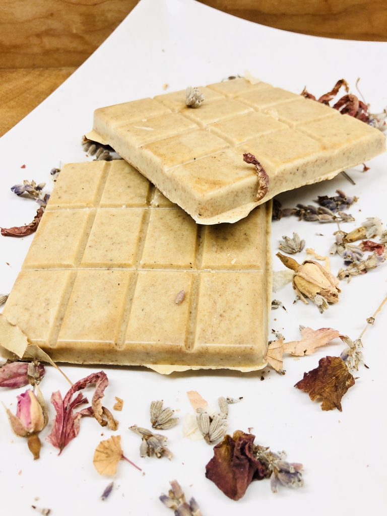 Diese vegane weiße Schokolade mit Tonkabohne oder Vanille ist milchfrei und nur mit Ahornsirup gesüßt und daher industriezuckerfrei.