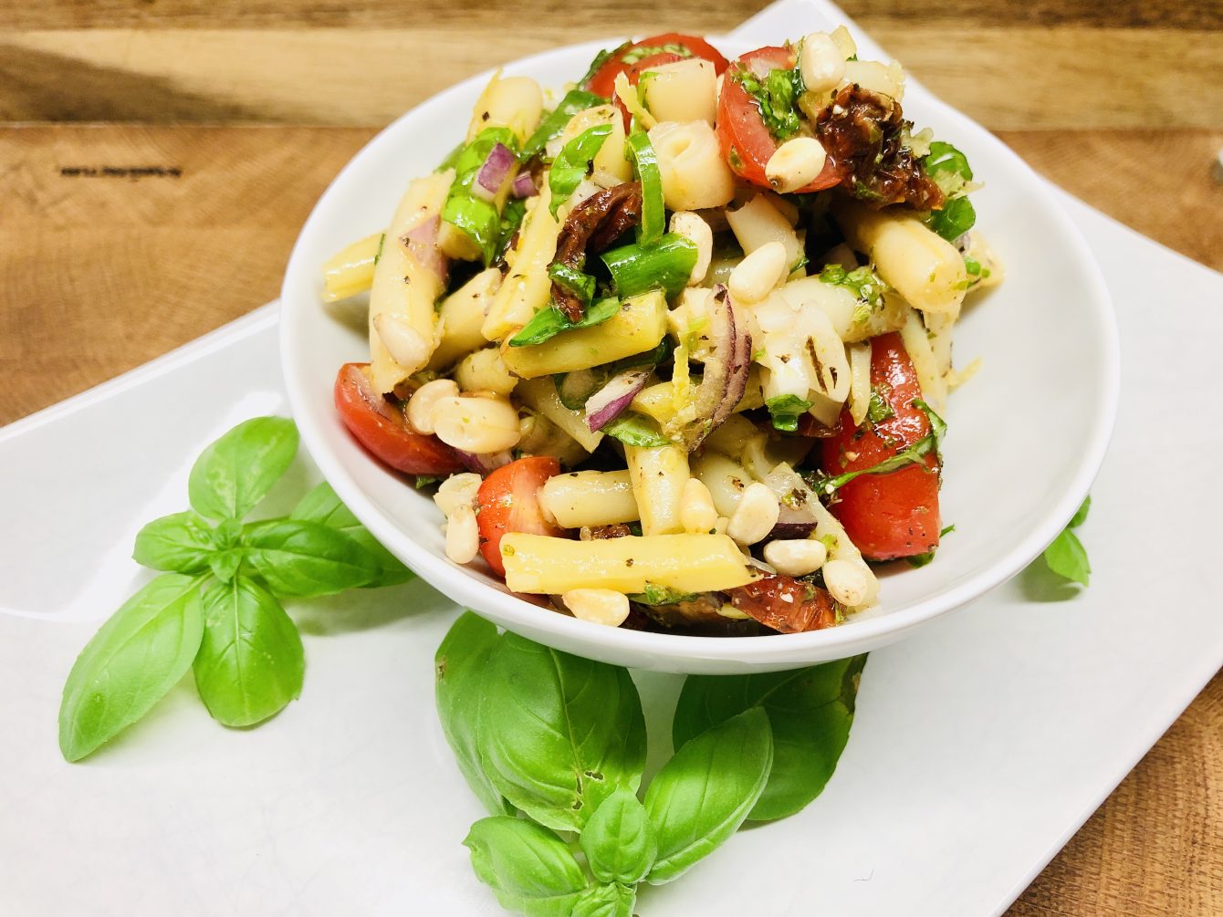 Frische mediterrane Kräuter und ein einfaches Zitronen Balsamico Dressing geben dem Salat eine frische und aromatische Würze.