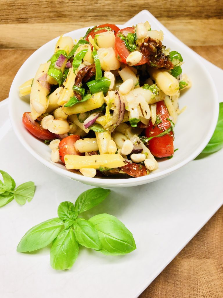Suchst Du einen leichten und frischen Sommersalat oder einer einfachen Beilage zum Grillen oder für die Mittagspause im Büro? Mit diesem Bohnen-Salat liegst Du genau richtig. Er ist eine perfekte Beilage oder eine leichte Mahlzeit für mittags oder abends I. Der heißen Jahreszeit. Du kannst ihn im Voraus und mit wenigen, praktischen Zutaten leicht zubereiten.