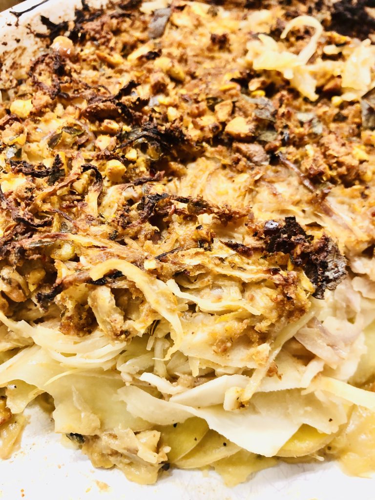 Kartoffel Weißkohl Gratin mit Miso