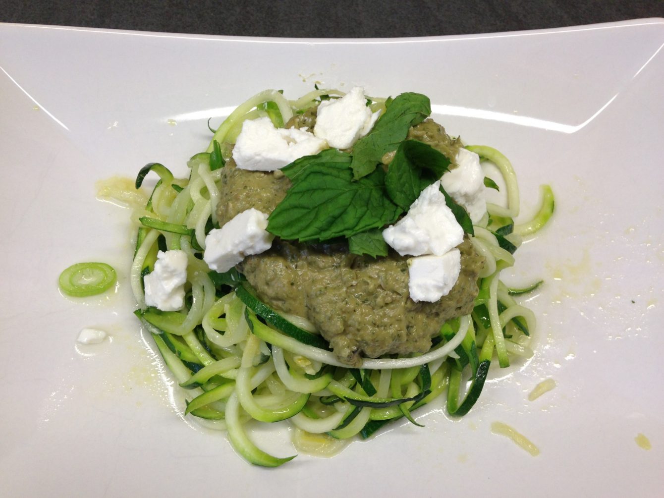 Zucchini Spaghetti mit Mandel Avocado Minzpesto